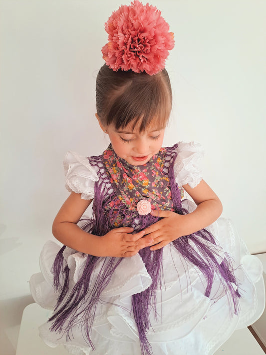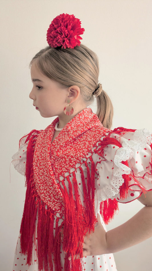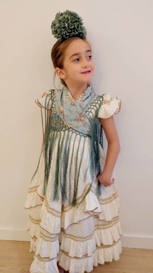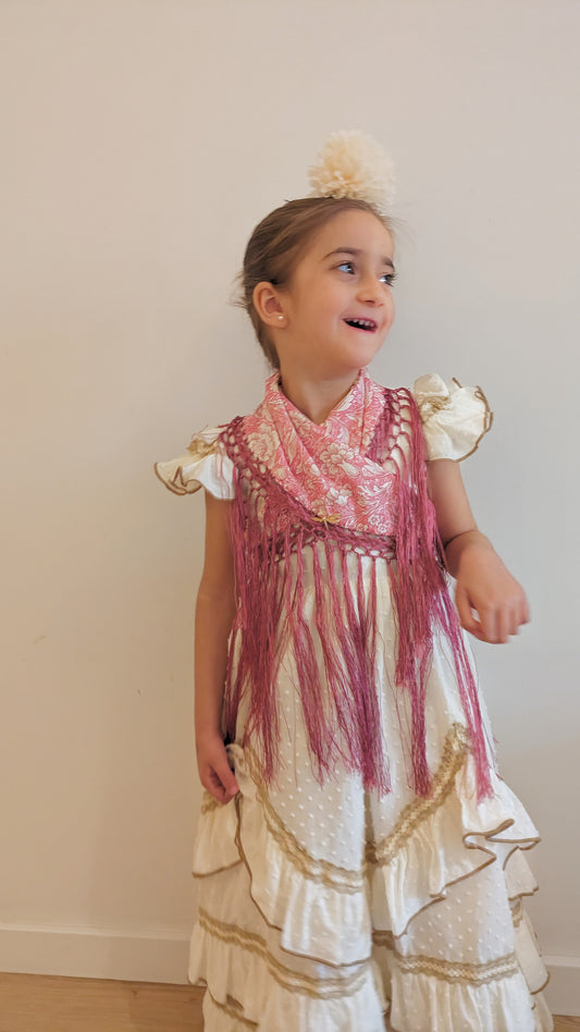 Explora nuestra colección exclusiva de mantoncillos de flamenca para niñas, un diseño propio de MiBebesito con producción muy limitada. Cada pieza está flecada a mano en Cantillana, Sevilla —la cuna del mantón—, lo que garantiza un acabado artesanal y lleno de tradición.