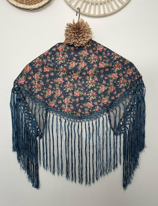 Mantoncillo Estampado Azul Fleco turquesa Para Niña