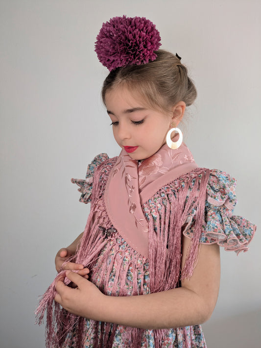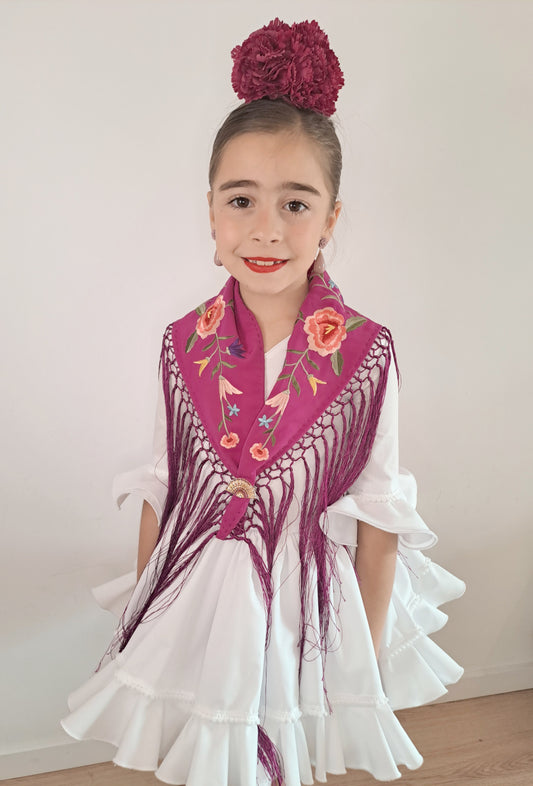 Pack Mantoncillos Bordados Mujer y Niña Fucsia a Tono Fleco Largo