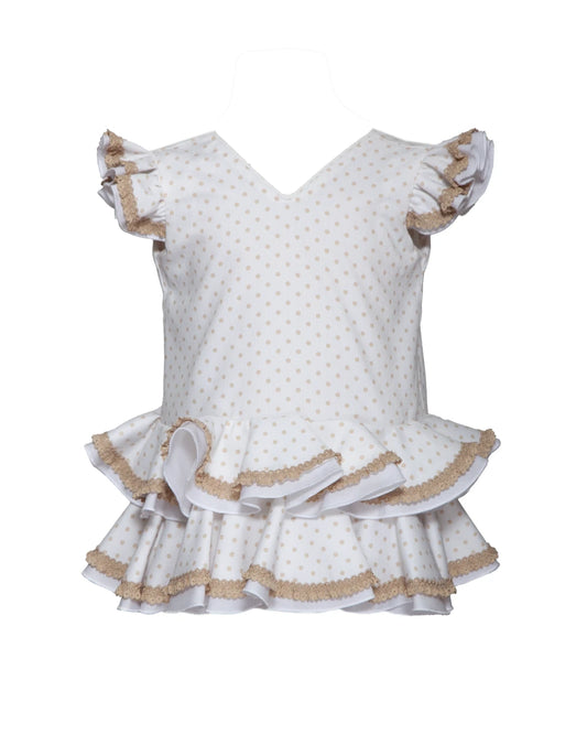 Traje flamenca bebé blanco lunar camel 1 año