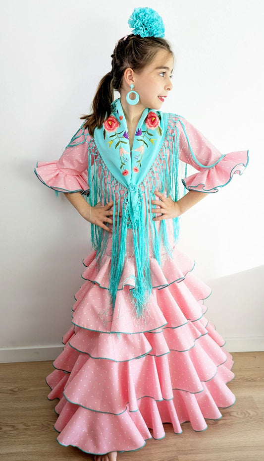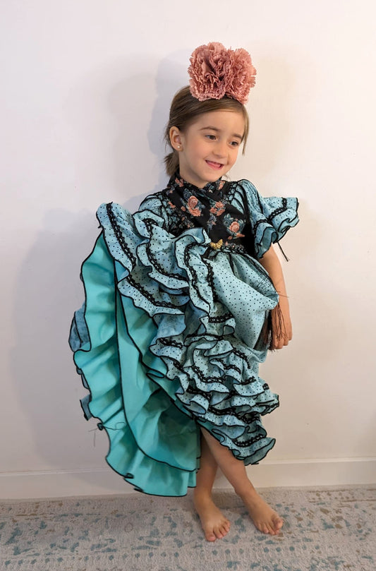 Vestido de flamenca verde agua lunar negro niña