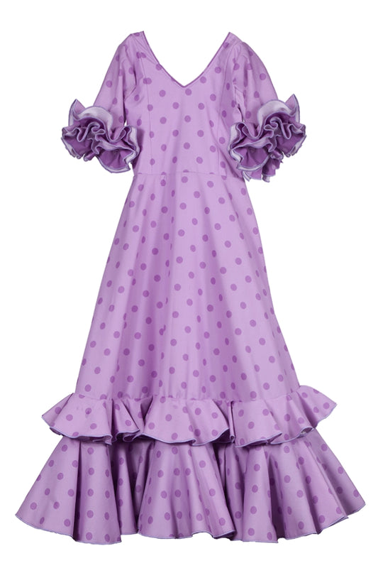 Trajes de flamenca largos, este modelo de vestido se puede llevar bien con una largura hasta el talón o hasta el suelo, como más te guste.