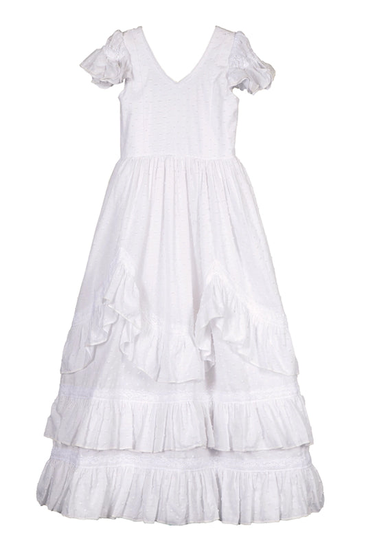 Vestido flamenca plumeti blanco con cinta encaje blanco