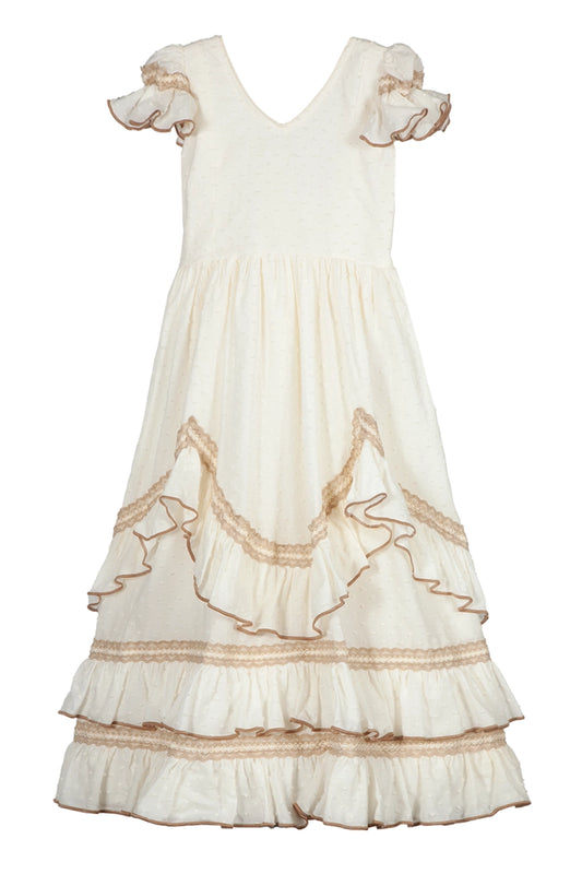 Vestido flamenca plumeti marfil con cinta encaje marfil