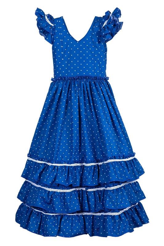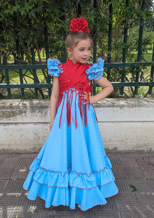 Vestido flamenca capricho celeste con lazos de terciopelo