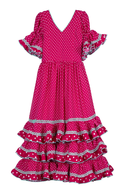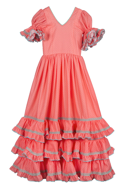Vestido de flamenca coral lunar blanco contraste verde agua