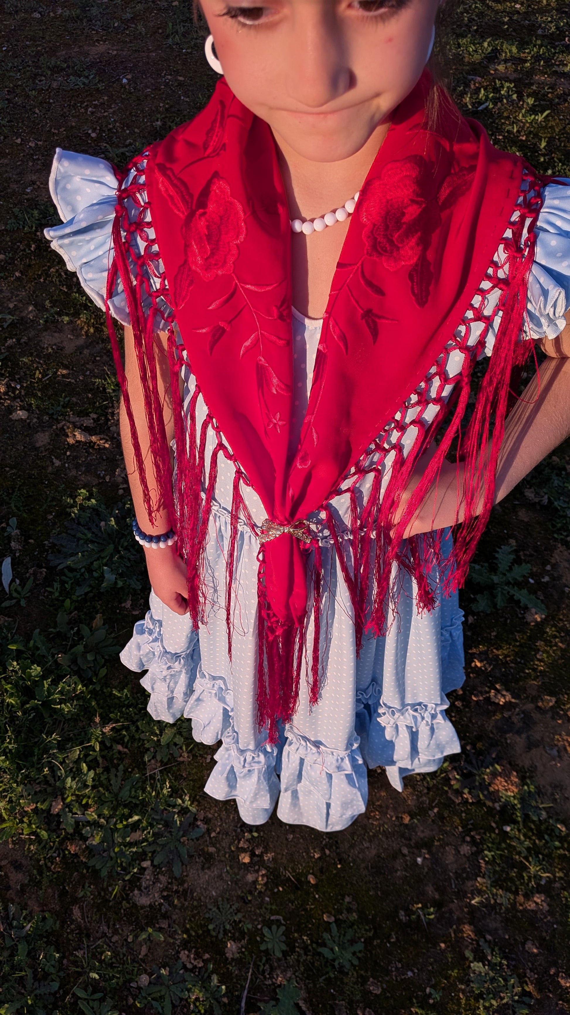 MANTONCILLO bordado NIÑA. Edad desde 2 años a 10 años. Las niñas más pequeñitas lo pueden llevar cruzado.