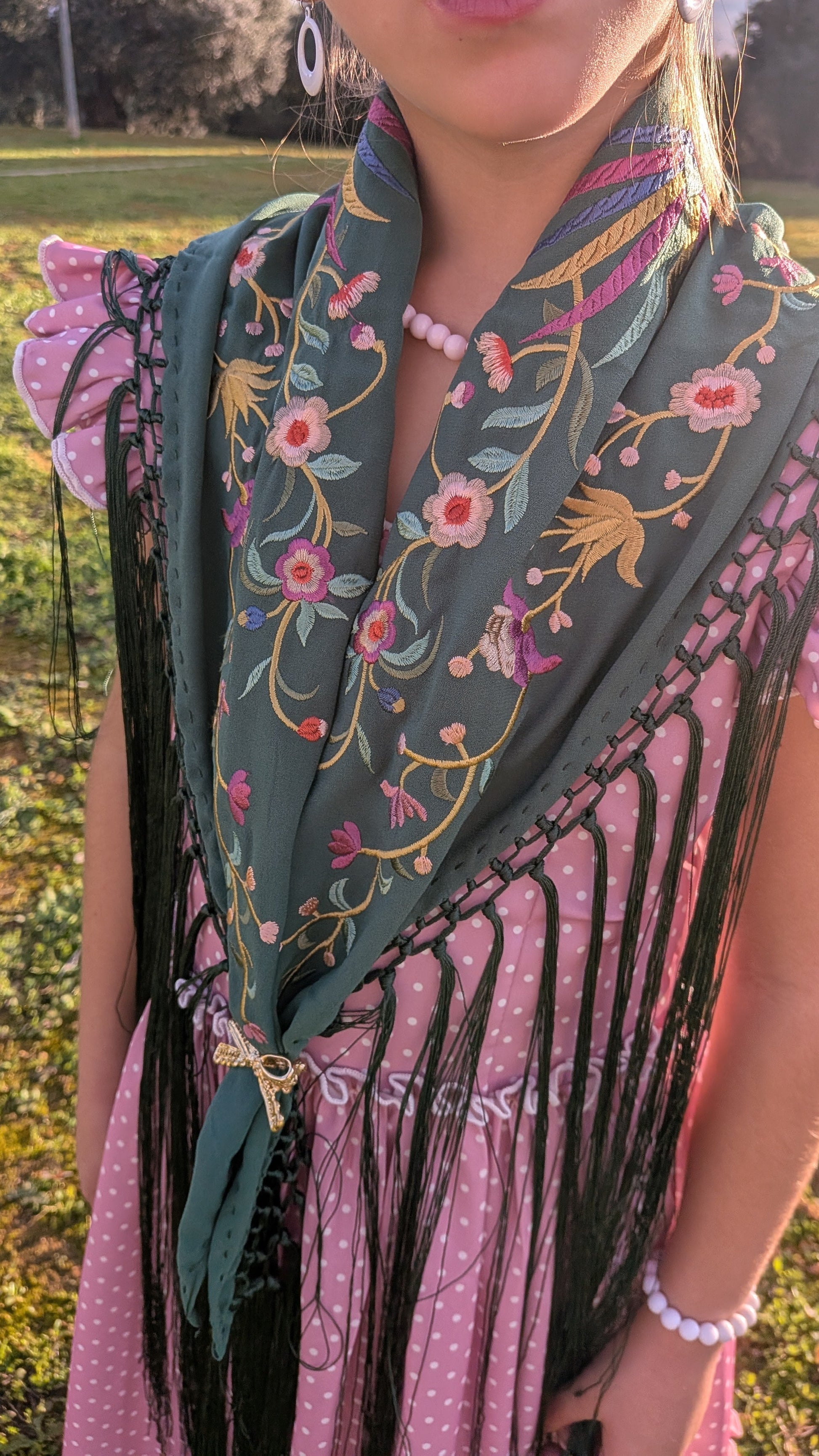 MANTONCILLO bordado NIÑA. Edad desde 2 años a 10 años. Las niñas más pequeñitas lo pueden llevar cruzado.