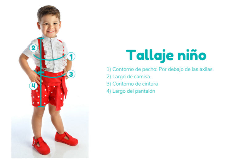 Clásico entre los clásicos, dentro de la moda flamenca, también llamado traje de bodeguero, el atuendo campero es sencillo y elegante… pero también puede ser muy bonito. Por el momento, si quieres vestir a un niño de flamenco, este diseño le va a sentar como un guante. Tres son las piezas que incluye el artículo: camisa, pantaloncito y fajín.